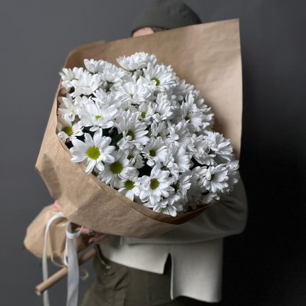 Букет Лучшее Признание S из танацетума и кустовой пионовидной розы сильвиа пинк